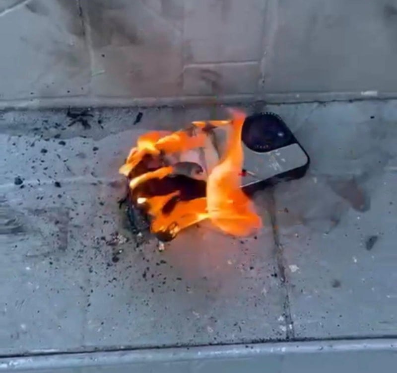 Olay anına dair kamera kayıtları da mevcut. Telefon hala elimde, batarya kısmı tamamen kül oldu. Direkt bataryadan alev aldı, yoğun beyaz duman çıktı ve çok kötü bir koku yayıldı." dedi.