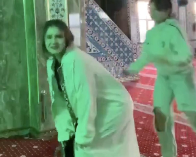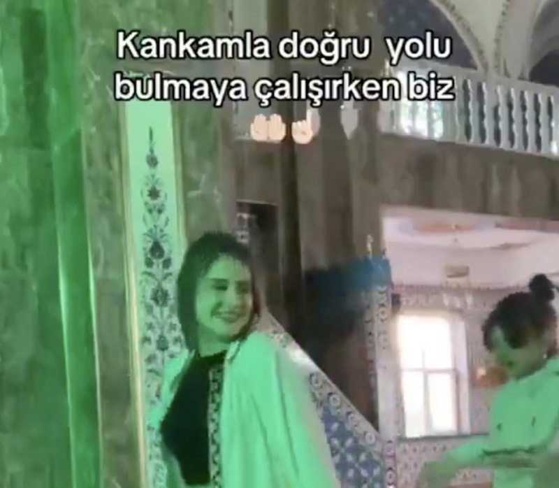 Bir camide çekilen görüntüler sosyal medyada infial yarattı. Görüntülerde imam cübbesi giyen iki kızın uygunsuz davranışlar sergilediği görüldü.