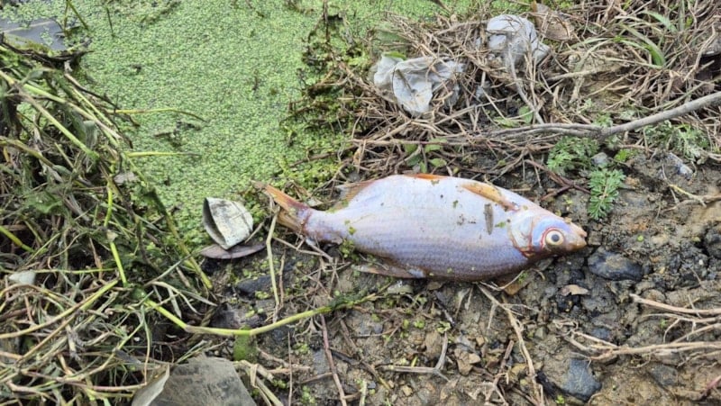 Eyüpsultan ilçesinde gölette yaşanan yosun patlaması nedeniyle çok sayıda balık telef olurken ölü balıkların kıyıya vurduğu görüldü.
