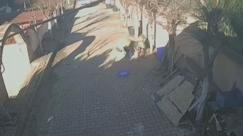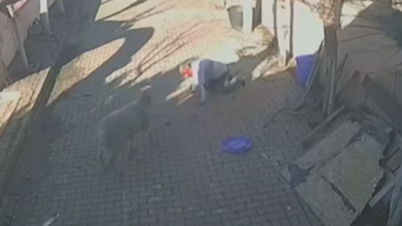 Görüntülerde, Fikret B.'ye beslediği koçun dakikalarca saldırması ve Fikret B.'nin koç ile uzaklaşması yer aldı.