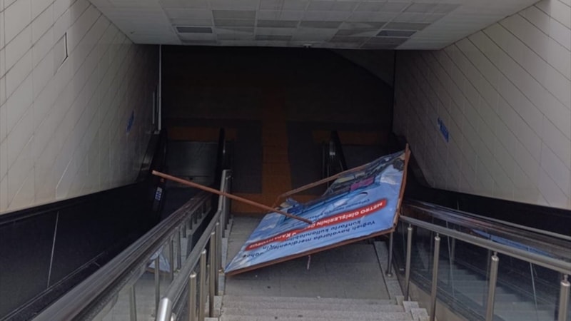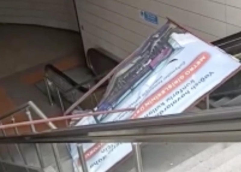 Maltepe metro istasyonunda, yürüyen merdivenlerde üzerine reklam panosu düşen kadın, yaralandı.