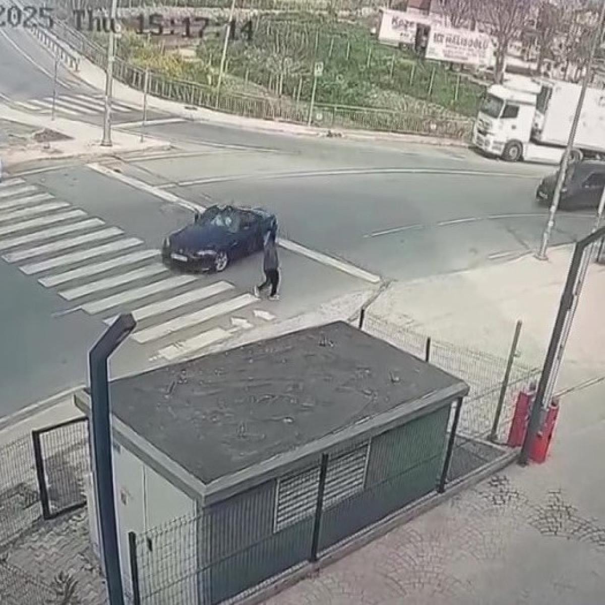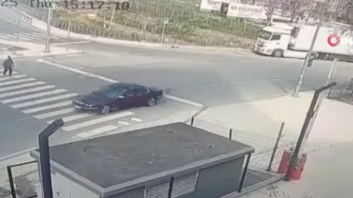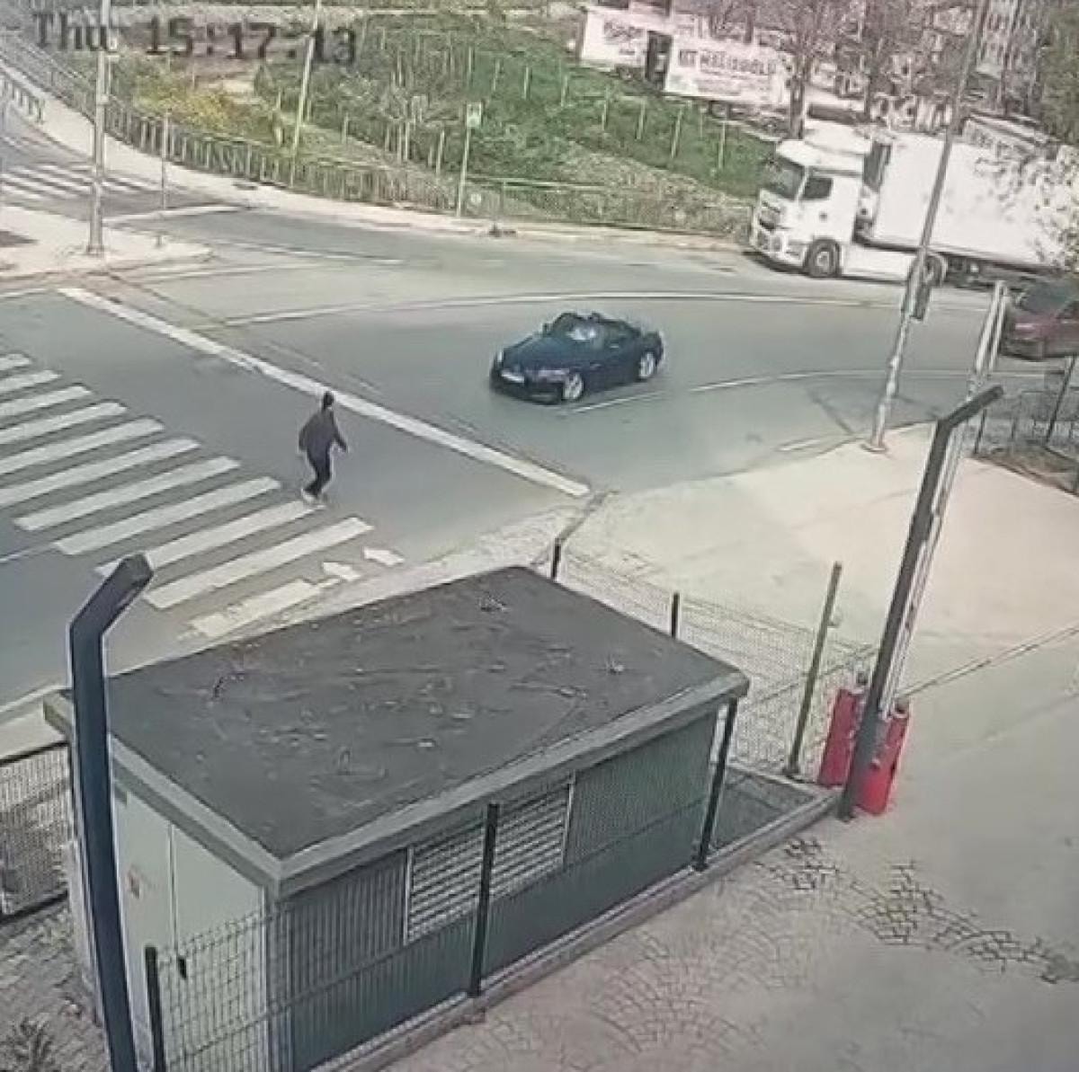 O sırada bir hafif ticari aracın ise tıpkı bir yaya gibi kaldırımdan yola girmeye çalıştığı ve yaya geçidini işgal ettiği görüldü.