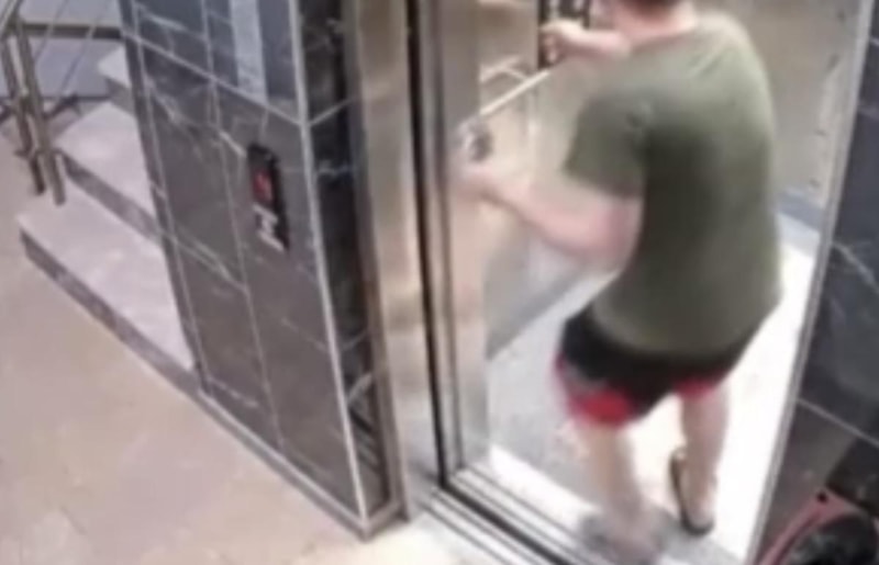 Vatandaşın elinde kahve bardağıyla asansöre binerek kaçmaya çalıştığı görüldü.