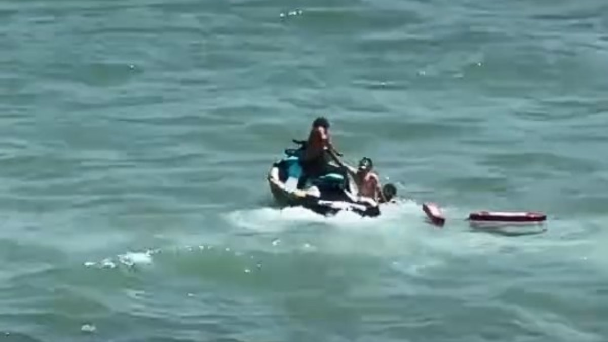 Can simidiyle su yüzeyinde tutulan genç, jet ski ile alınarak kıyıya çıkarıldı.