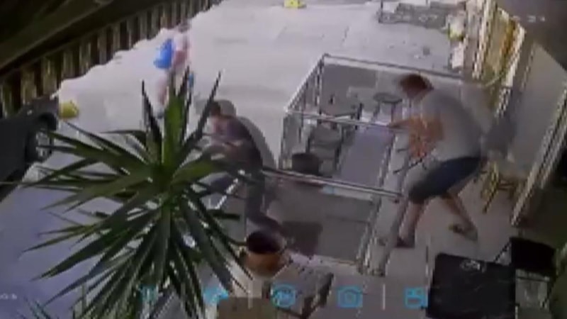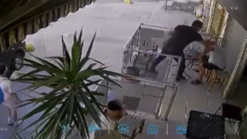 Aldığı darbe sonrası neye uğradığını şaşıran kişi, can havliyle yerinden kalkarak saldırganın peşinden gitmeye çalıştı.