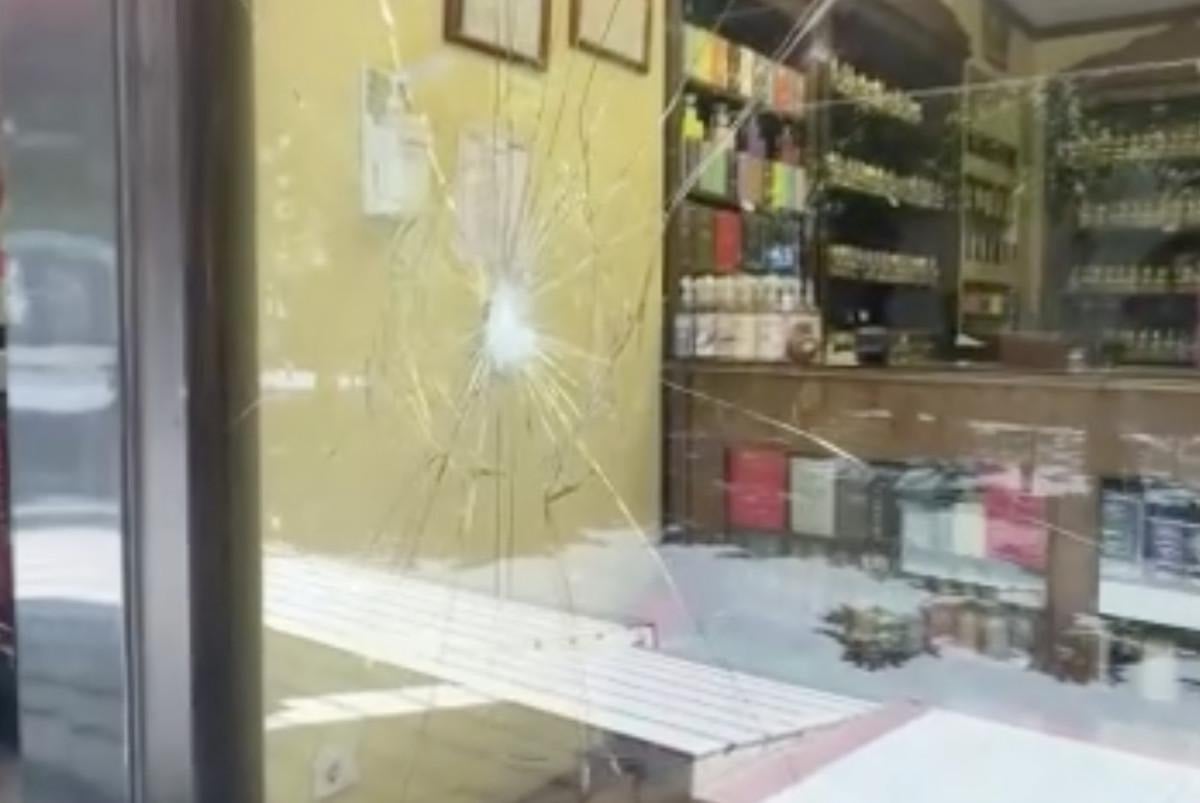 İş yerinde taşların hedefi alan öğretmen ve iş yeri çalışanı durumu polis ekiplerine bildirdi.