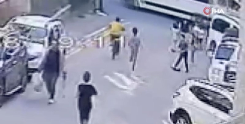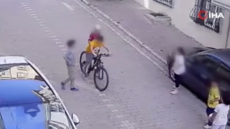 Çaldığı bisikleti arkadaşlarına göstermek isteyen küçük çocuk, sokak ortasında bisiklet sürmeye başladı.