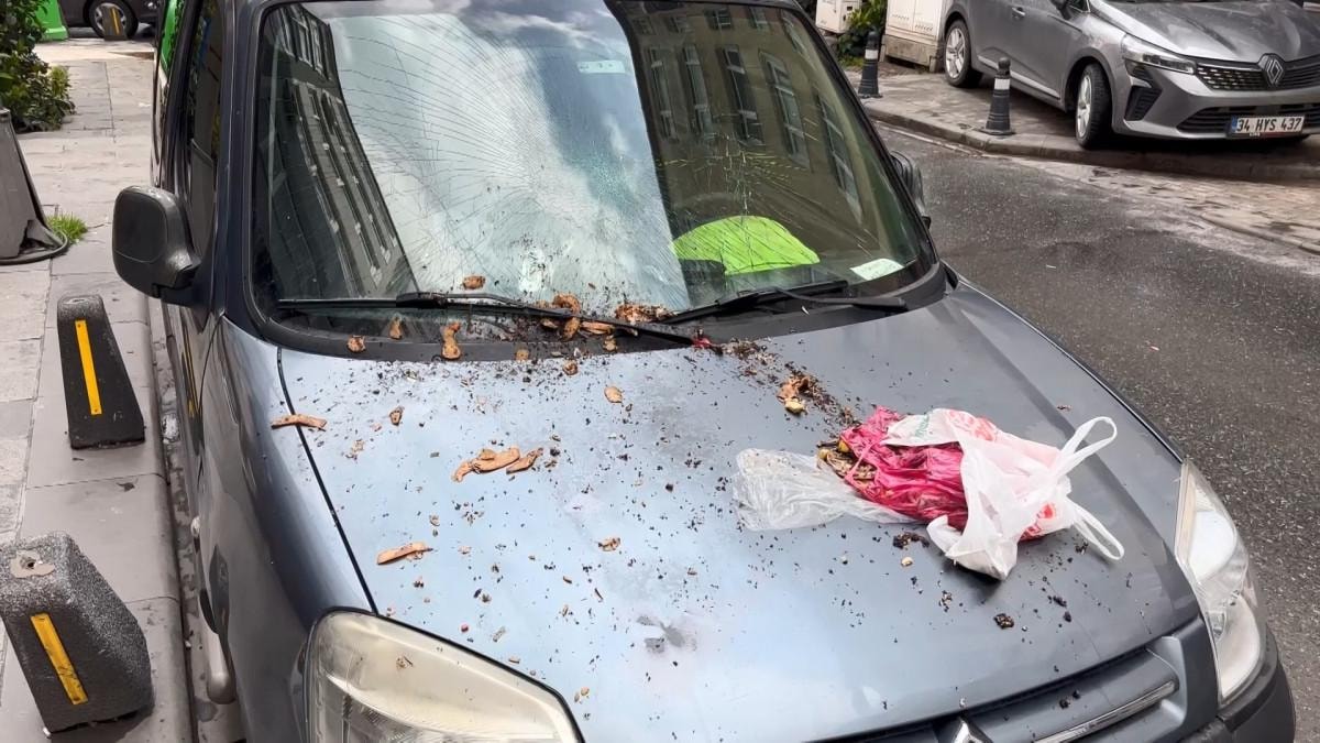 İstanbul'un Güngören ilçesine bağlı Akıncılar Mahallesi'nde işe gitmek üzere aracının yanına giden sürücü, akılalmaz bir manzara ile karşılaştı.
