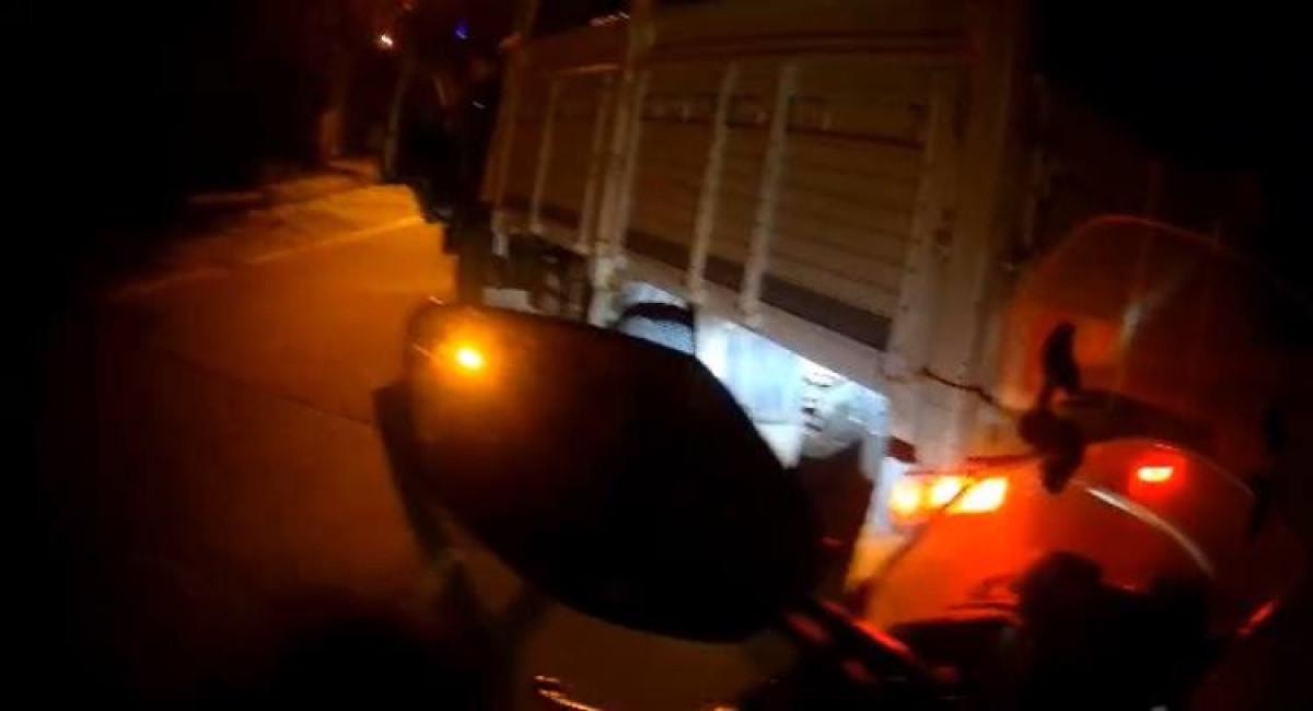 İddiaya göre, motosikleti ile ilerleyen Yasin A., arkasından gelen kamyonetin çarpmasından son anda manevra yaparak kurtuldu.