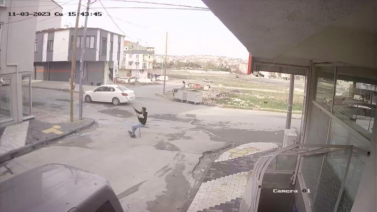 Elektrik ve telefon kablolarının geçtiği bir direği gözüne kestiren şüpheli, direkten sokağa doğru sarkan kabloları eliyle çekerek kopardı.