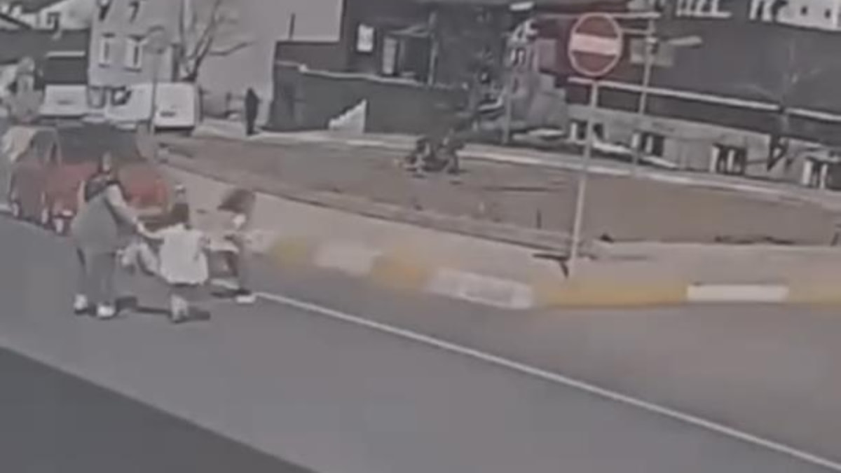Çarpmanın etkisiyle minik kız çocuğu metrelerce havalanarak yere çakıldı.