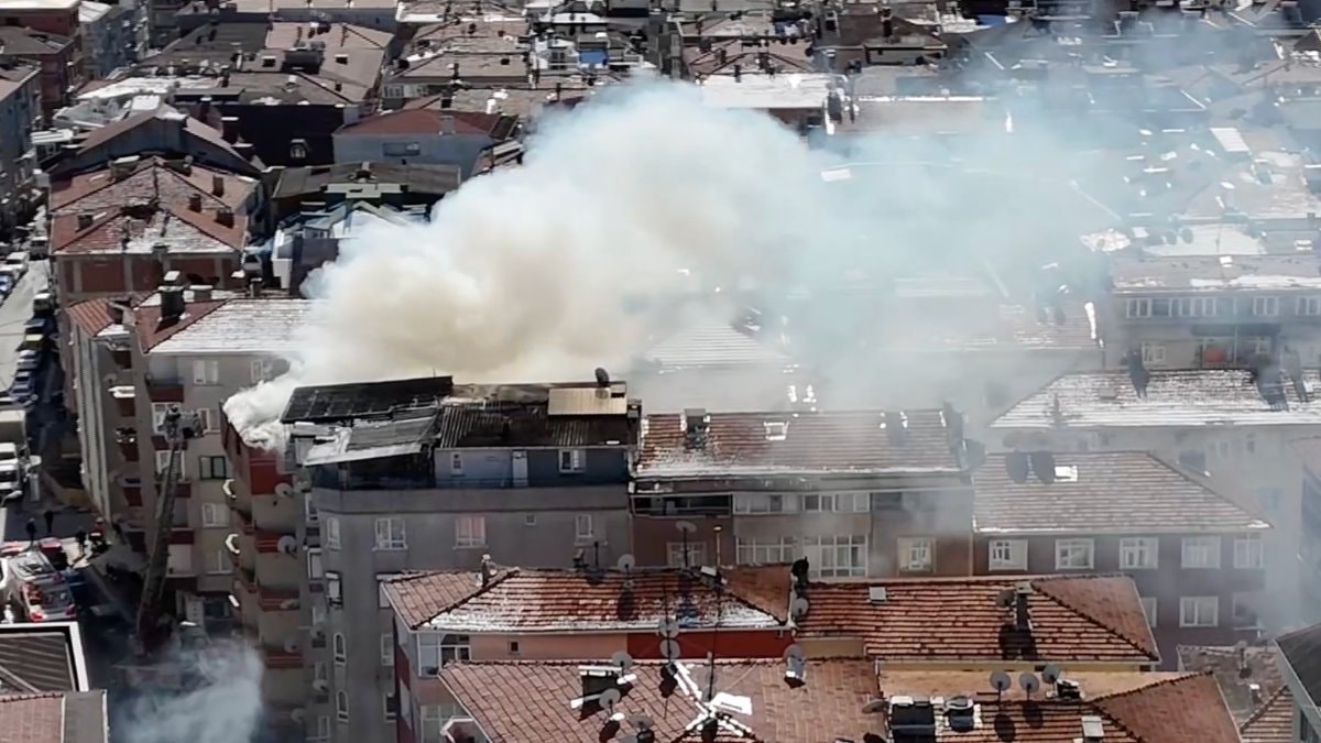 İstanbul'un Bahçelievler ilçesinde, 5 katlı apartmanın çatısında tadilat çalışması sırasından yangın çıktı.