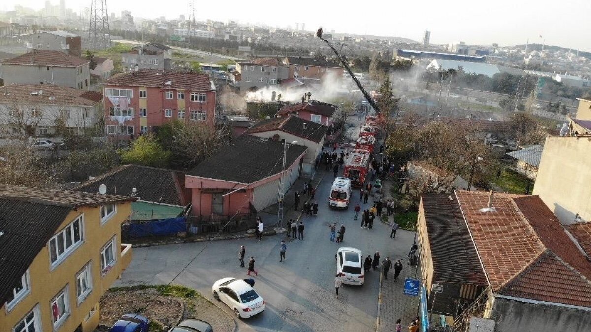 İhbar üzerine adrese gelen polis ekipleri çevrede güvenlik önlemi alırken, itfaiye ekipleri ise alevlerin sardığı çatılara müdahale etti.