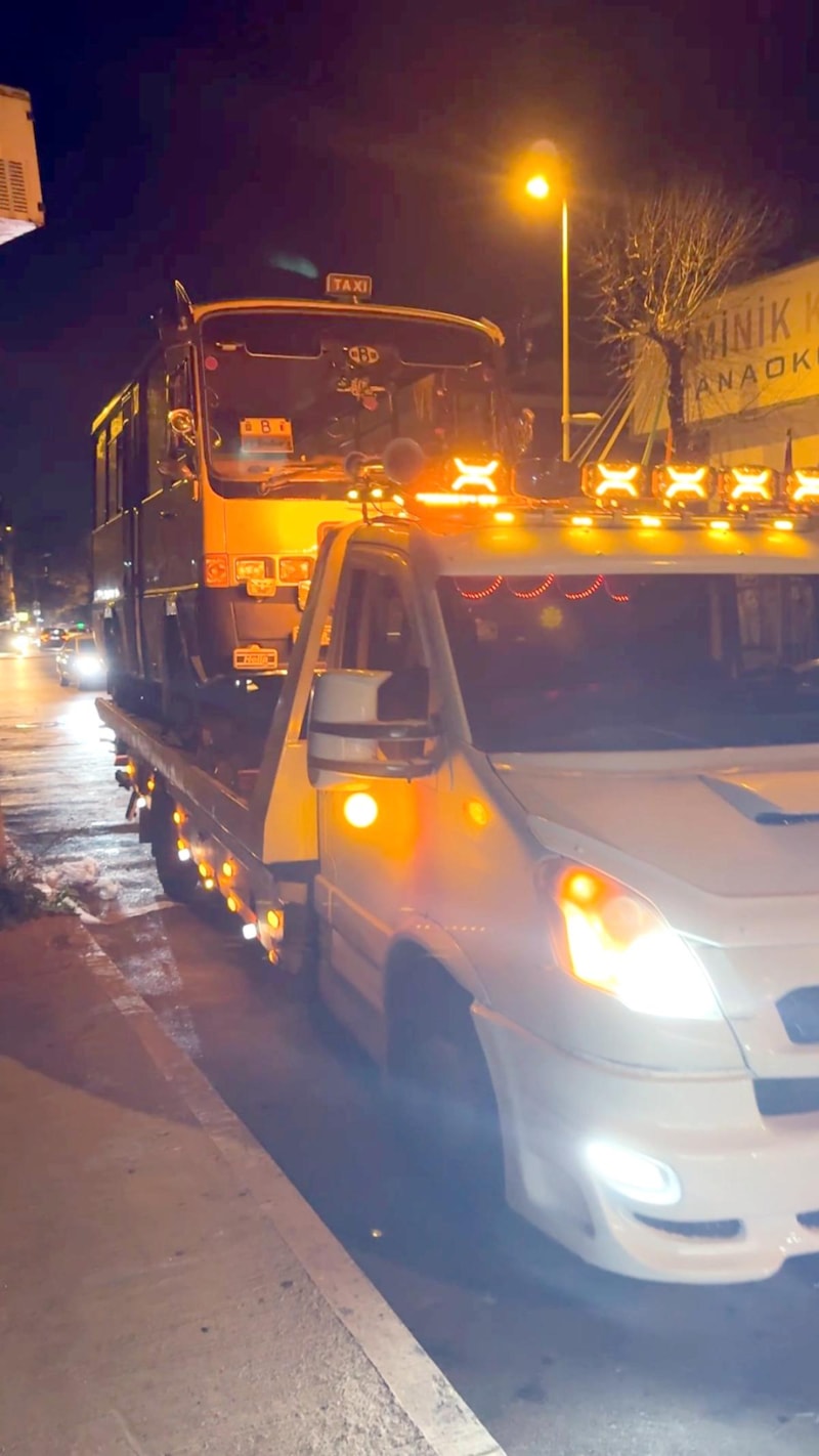 İstanbul Avcılar'da arızalanan minibüsü götürmek için çağrılan çekici, araç yüklendikten kısa süre sonra hareket etti.