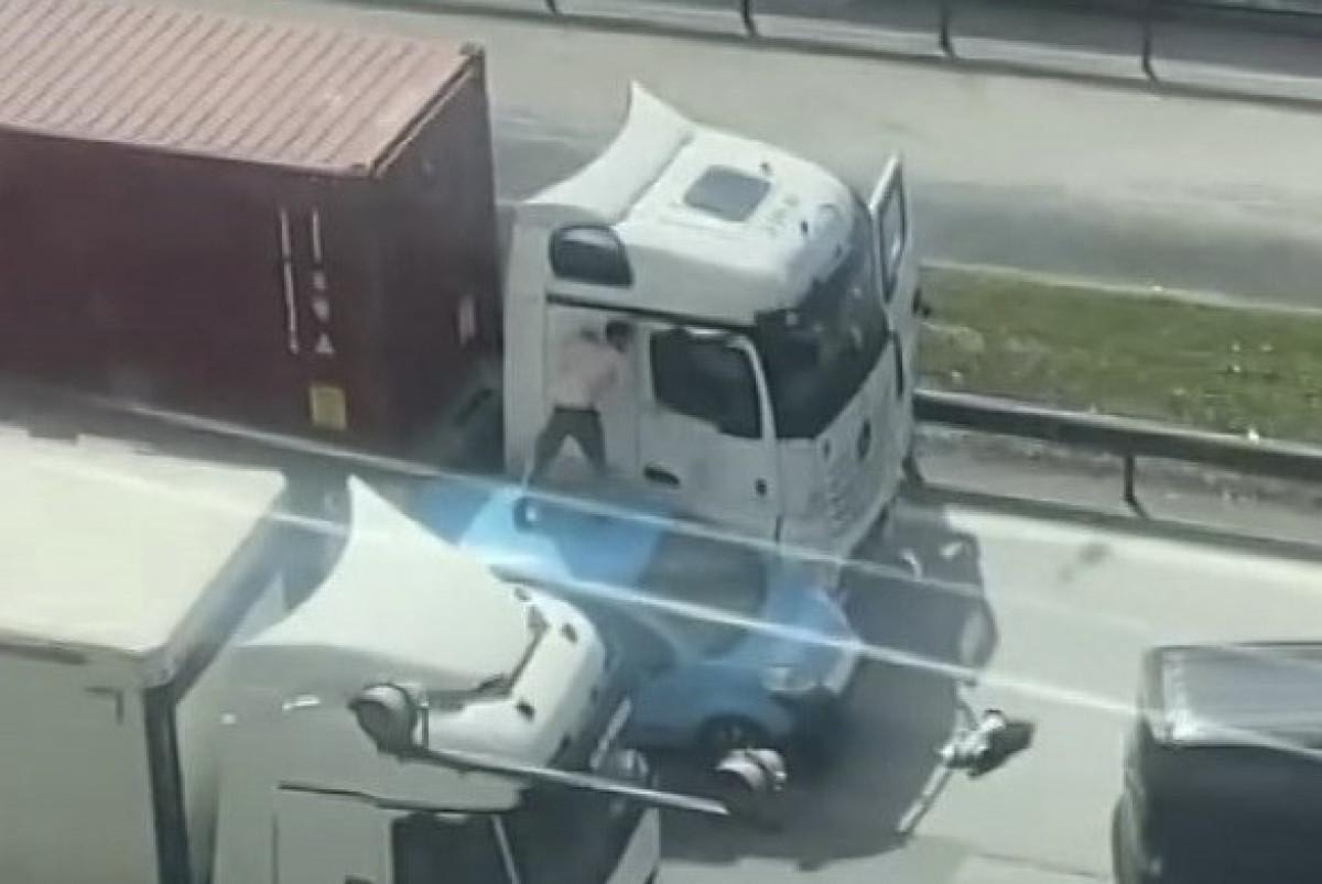 İstanbul Başakşehir'de seyir halindeki tır şoförüyle hafif ticari araç sürücüsü arasında çıkan yol verme tartışmasını büyüyerek kavgaya dönüştü.