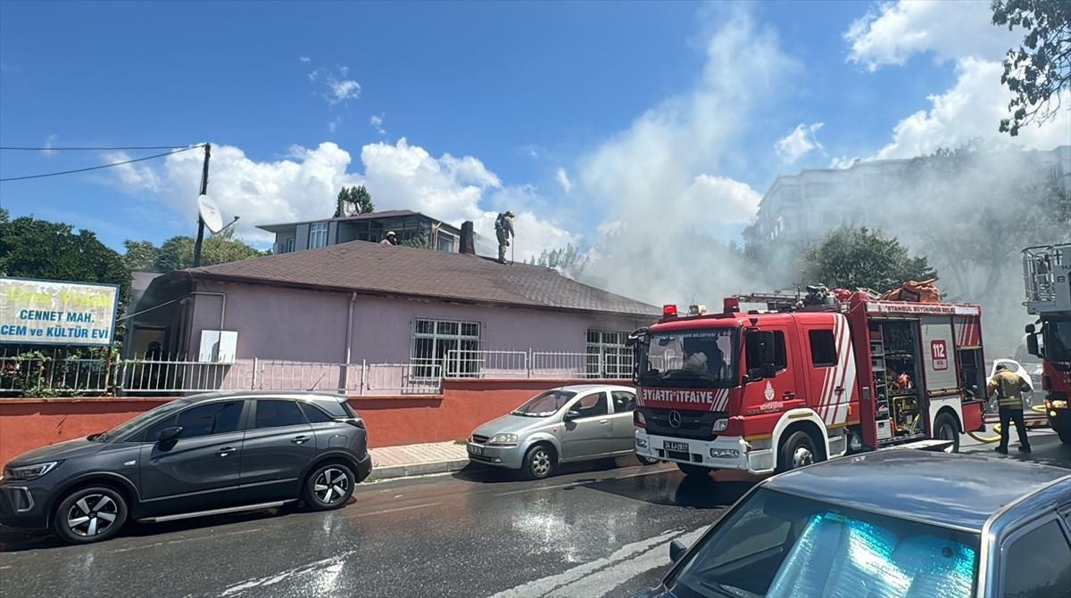 Yangına müdahale eden ekipler, alevleri kontrol altına aldı. Yangının cemevinin çatısında çıktığı belirlendi.