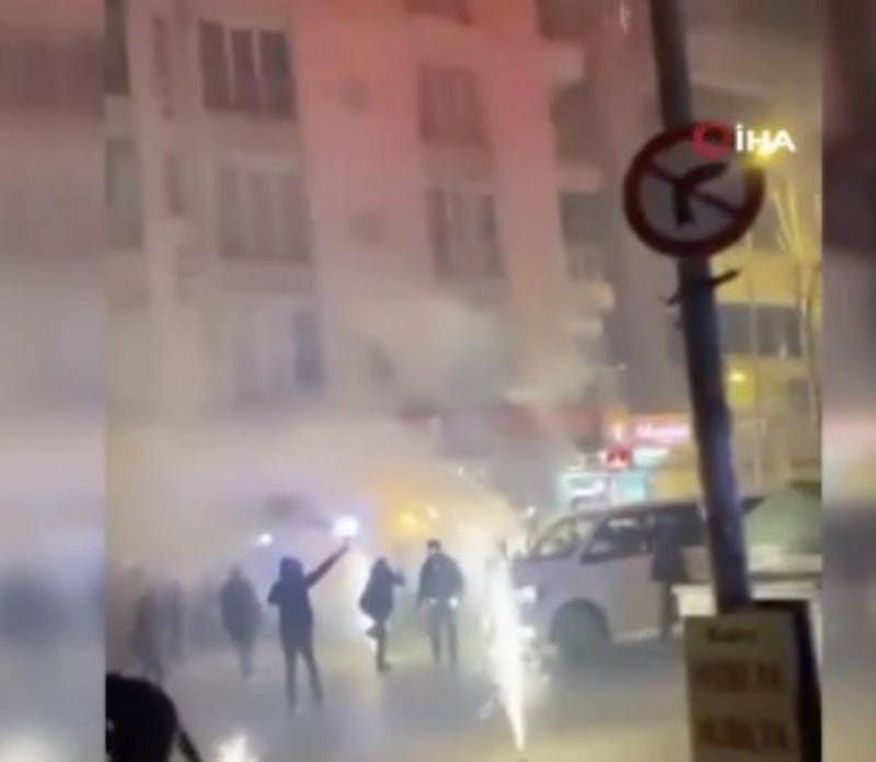 Caddeyi kısmen trafiğe kapatan gençler, yolu havai fişeklerle doldurdu.