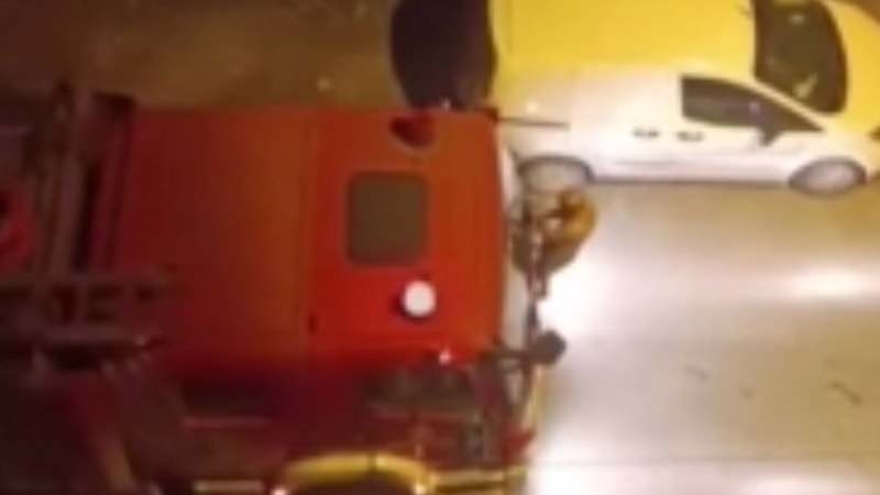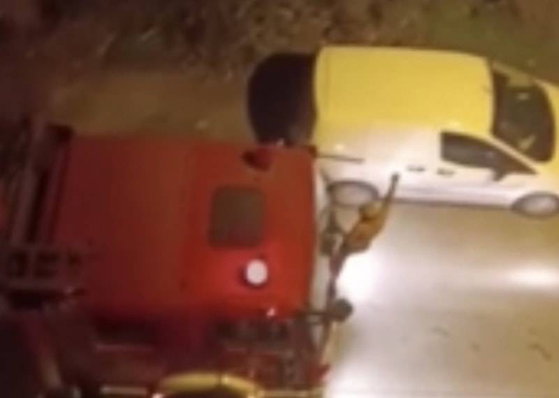 Şahsın yarı çıplak şekilde itfaiye aracının geçişine müdahale ettiği anlar, cep telefonu kamerasına yansıdı.