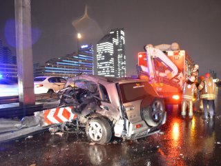 İstanbul'da sürücüsünün hakimiyetini kaybetmesi sonucu cip yol kenarındaki bariyerlere girdi. Hurda yığına dönen cipteki 3 kişi yaralandı.