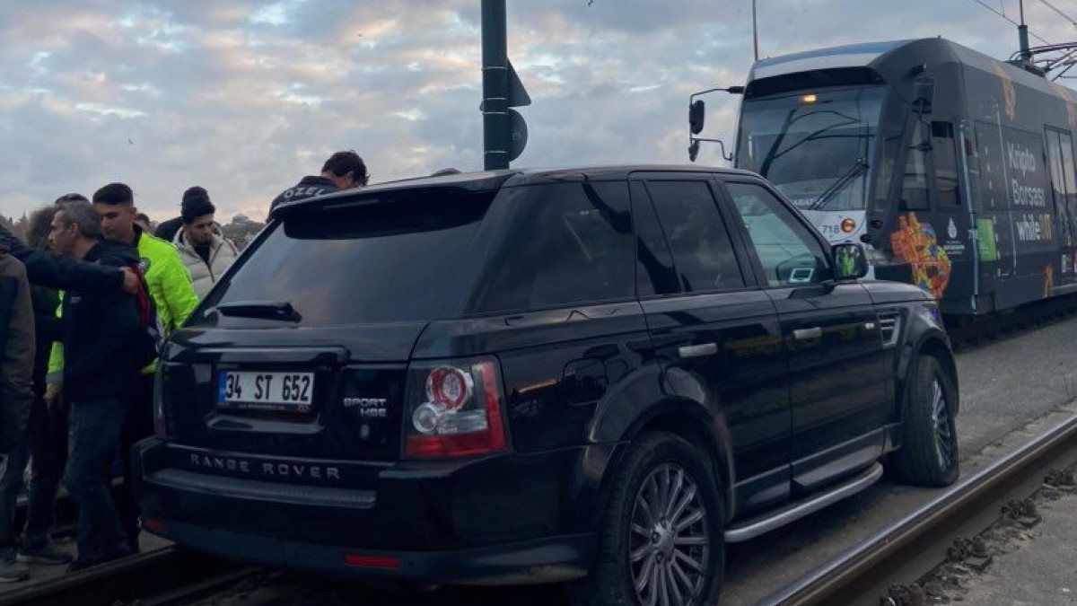 Tramvay seferlerinin aksamasına neden olan sürücü, polis merkezine götürülürken cip, çekiciyle olay yerinden kaldırıldı.