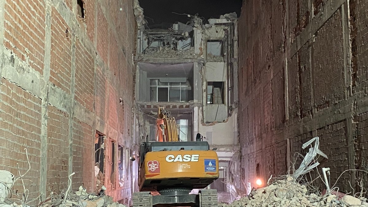 İşçiye ulaşmak için binanın ön tarafı iş makineleri ile yıkıldı.