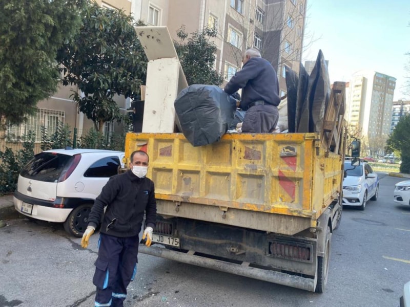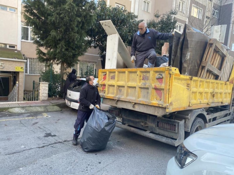 Ekipler anne ve kızını ambulans ile hastaneye götürürken, evde Beylikdüzü Belediyesi temizlik ekipleri tarafından çalışma başlatıldı.