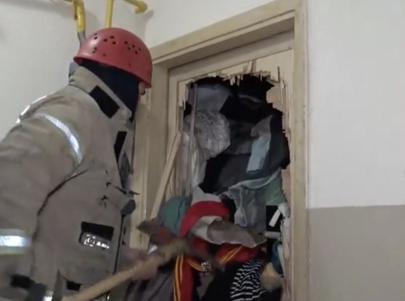 Hasan Ergin'in tek başına yaşadığı daireye gelen ekipler, tavana kadar atık giysi ve eşya depolanan çöp evle karşılaştı.