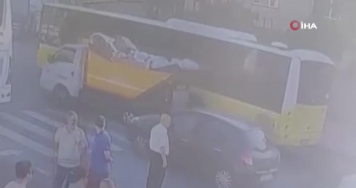 Gaziosmanpaşa ilçesine bağlı Karadeniz Mahallesi üzerinde seyreden bir çöp aracı sürücüsü, önündeki otobüsü sollamak istedi.