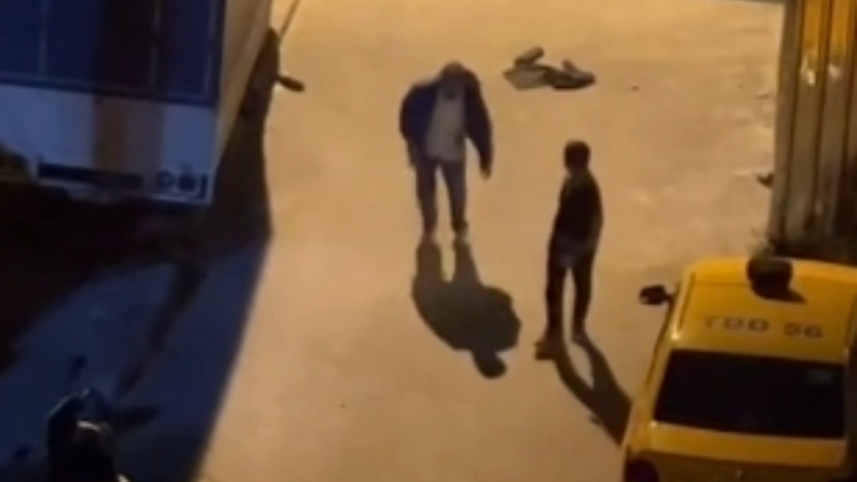 Yaşanan kavga anları, sokaktaki bir binada yaşayanların cep telefonu kamerası tarafından kaydedildi.