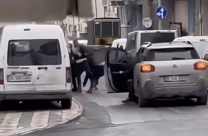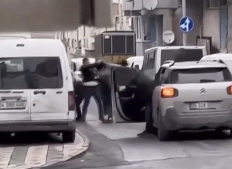Kavga sırasında yoldan geçen bir aracın sürücüsü, otomobilinden inerek kavgayı ayırmaya çalıştı.