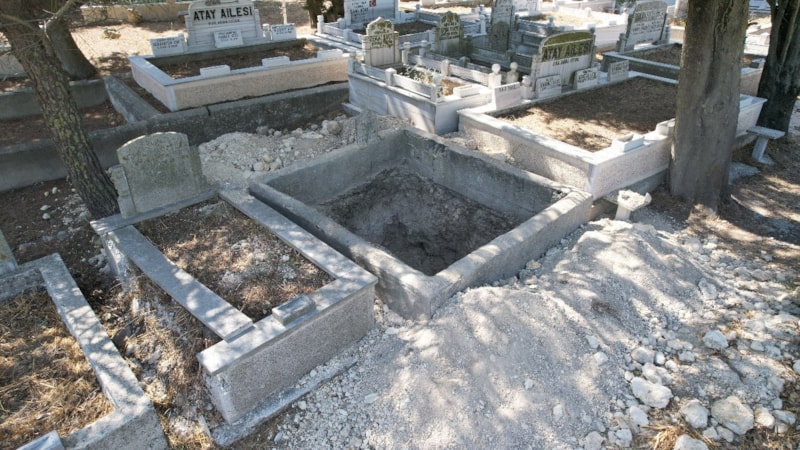 Mezarlığa dua etmek için gelenler açılmış mezarı görünce şok yaşadı.