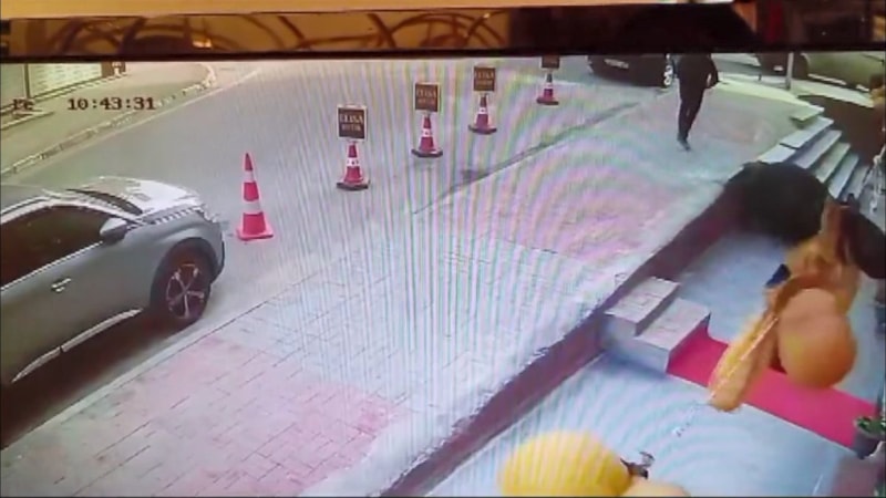 İşletme sahibi Doğan Kahyaoğlu'nun hayati tehlikesinin olmadığı öğrenilirken saldırı anı iş yerinin güvenlik kamerasına yansıdı.