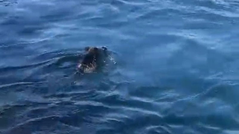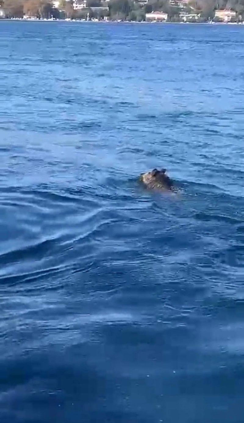 Denizin ortasında yüzen domuz görenleri şaşırttı.