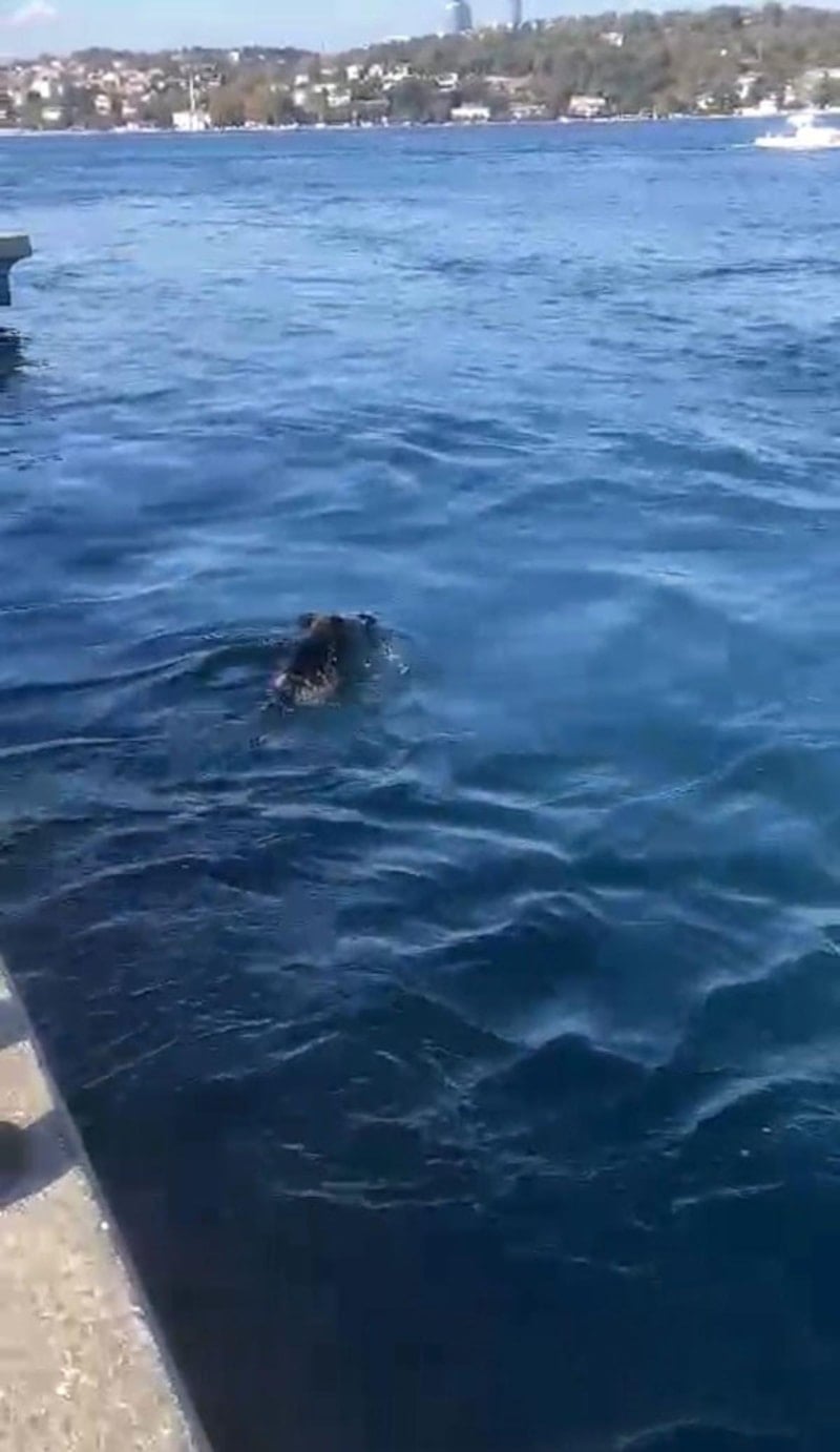 İstanbul Beykoz'da ormanlık alanlardan ilçeye inen bir yaban domuzu, Çubuklu Sahili'nde denize girerek yüzdü.