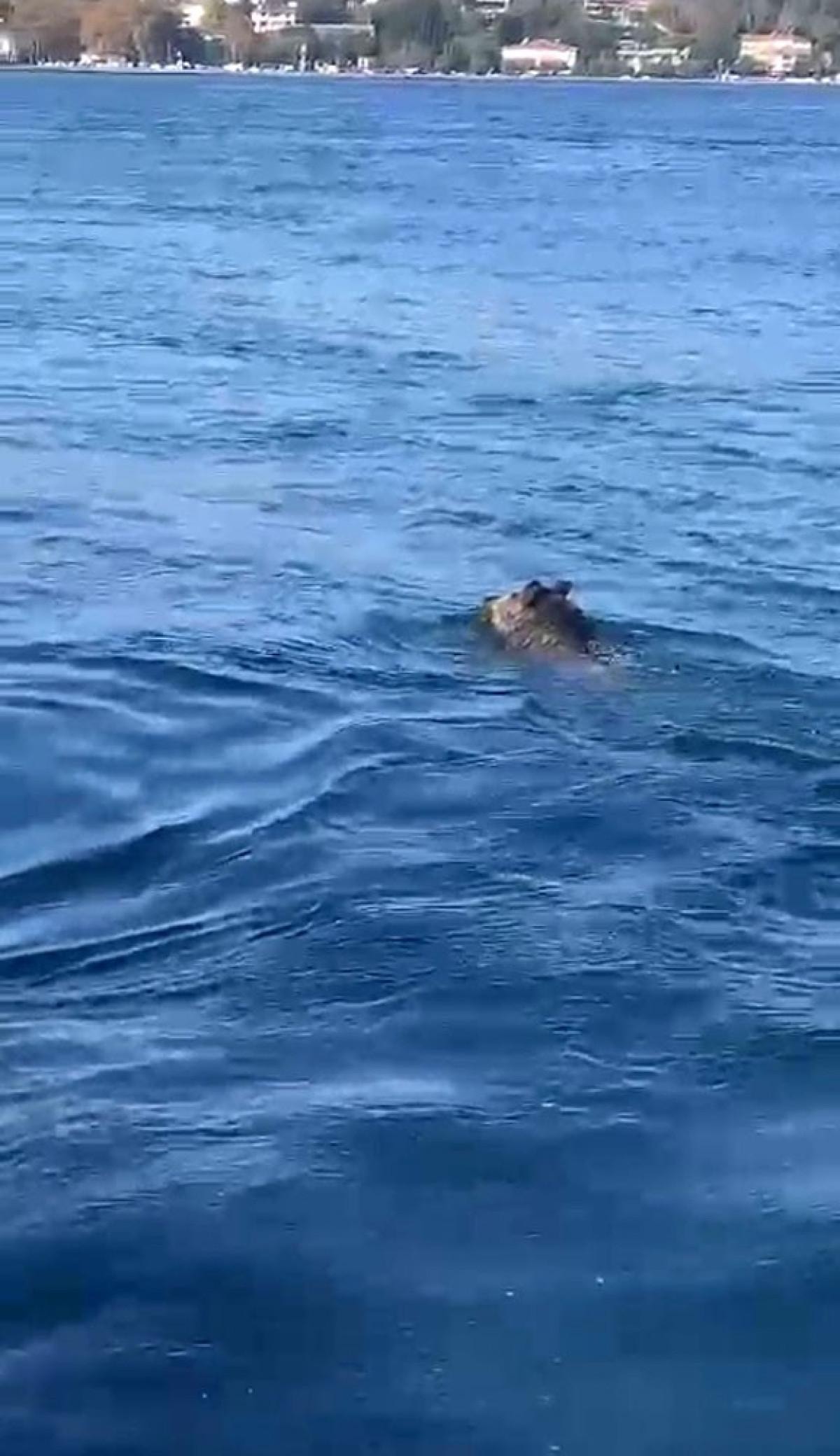 Kıyıdan yüzerek ilerleyen domuz, vatandaşların cep telefonu kamerasına yansıdı.