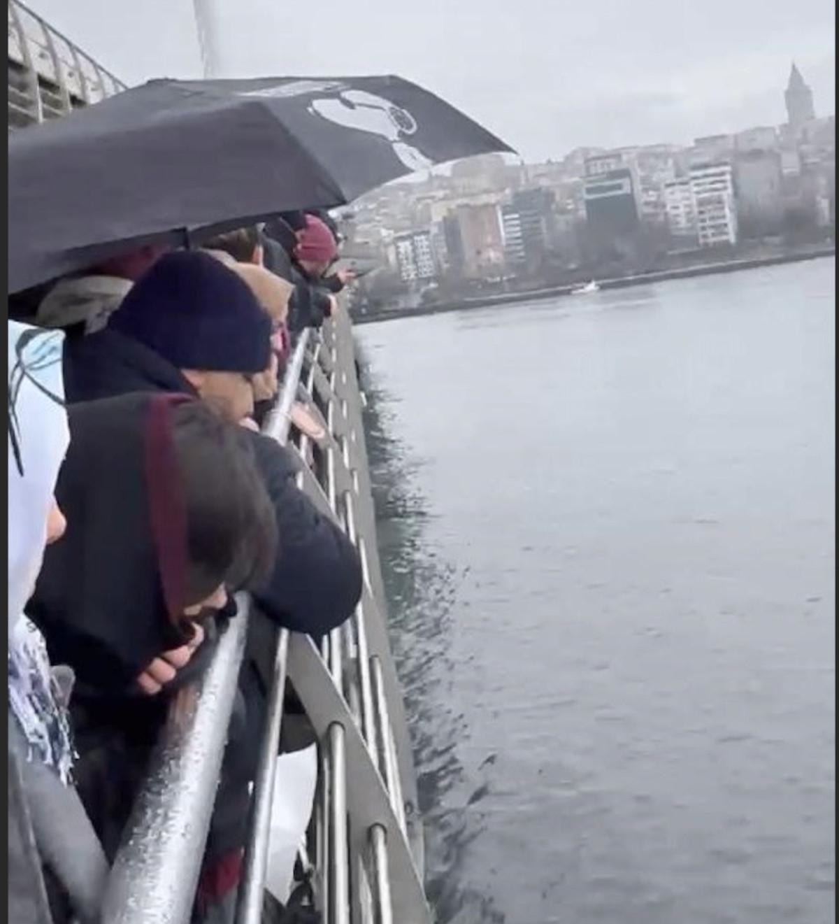 Cep telefonu görüntülerinde karadaki balıkçıların denize düşen kadının yerini işaret ettiği anlar yer alıyor.