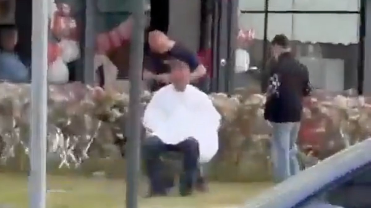 Sokakta makası ve tarağı eline alan berberin, işine kaldığı yerden devam etmesi çevredekilerin dikkatini çekerken, bu anlar cep telefonu kamerasına yansıdı.