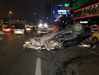 Sürücüsünün direksiyon hakimiyetini kaybettiği otomobil, refüjdeki direğe vurduktan sonra savrularak takla attı. Kazayı gören diğer sürücüler, yaralı sürücüye ilk müdahaleyi yaptıktan sonra durumu polise bildirdi. Olay yerine sağlık ve polis ekipleri sevk edildi.