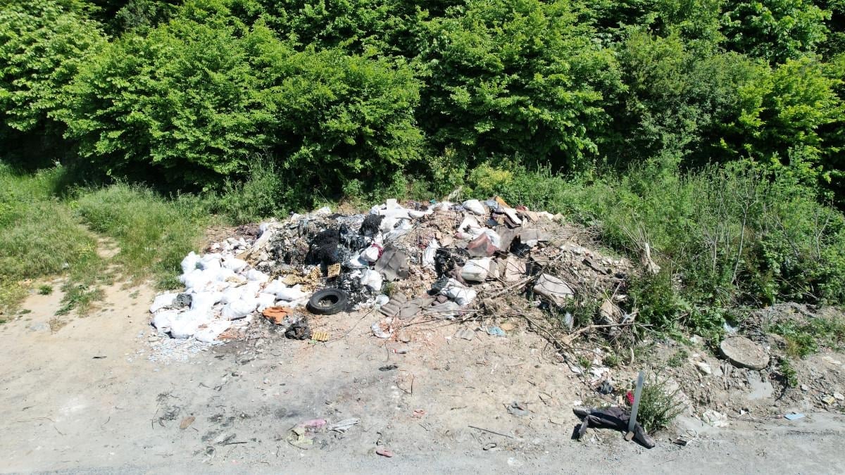 Öte yandan, ilçe genelindeki ormanlık ve yeşil alan kıyılarına bırakılan çöplerin oluşturduğu tahribat ve kötü görüntü, drone kamerasıyla havadan görüntülendi.