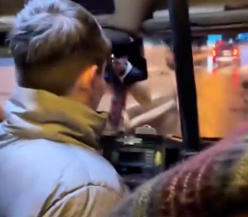 O anlar sosyal medyada paylaşılırken, dolmuşun içindeki sıkışıklığı ve yolcular arasındaki gerilim de görüntülere yansıdı.