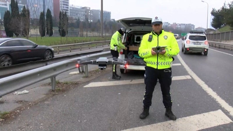 Polis ekipleri taralı alan ihlali yapan sürücüleri, drone ile havadan tespit etti.