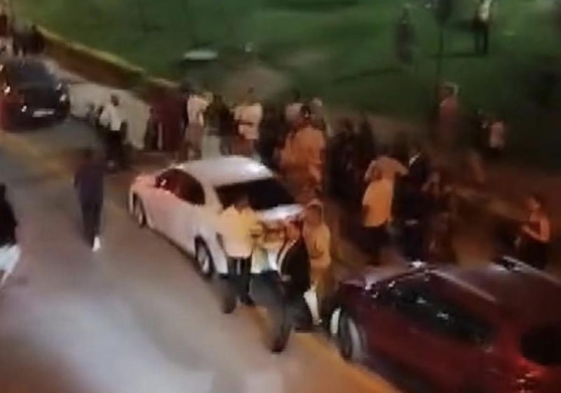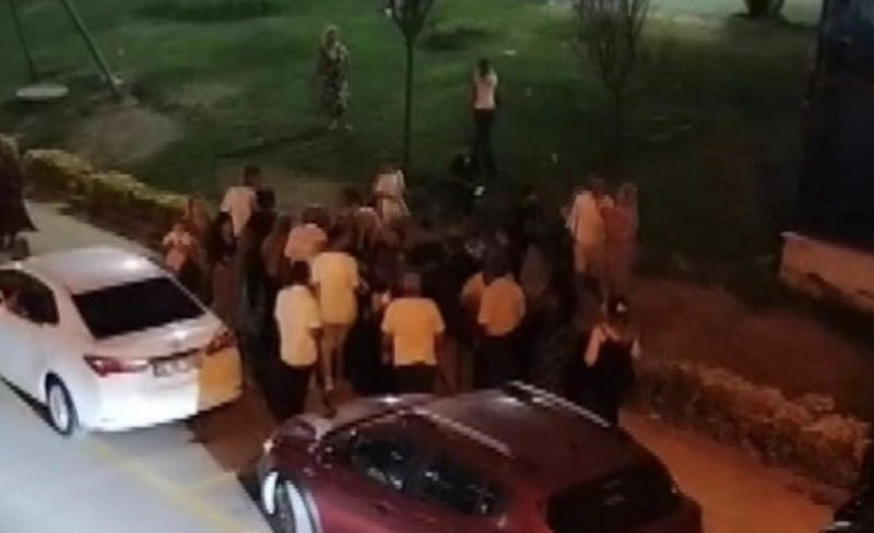 Cep telefonu kamerasına yansıyan görüntülerde, kavga eden kişilerin birbirine vurduğu, kadınların ve çocukların da arbede içinde kaldığı anlar görülüyor.