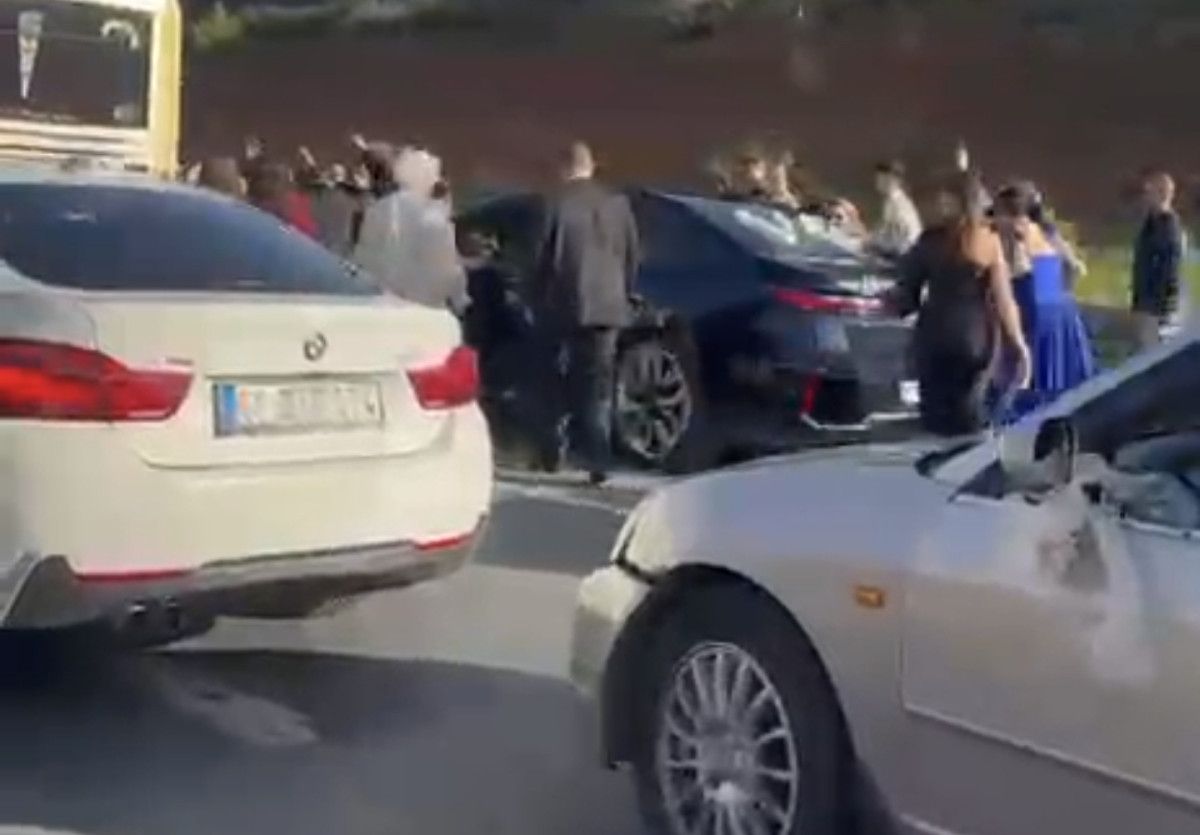 - Maltepe'de bir düğün konvoyu, otoyolda iki şeridi kapatıp horon oynadı.