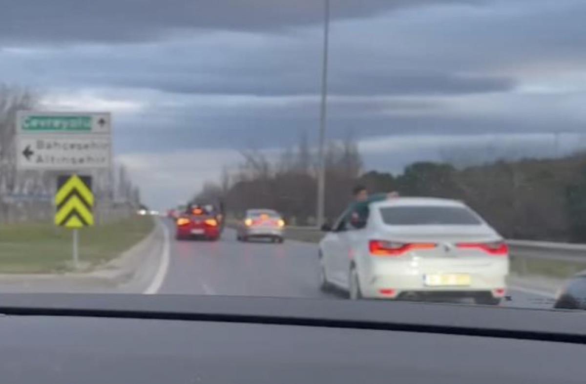 Başakşehir'de seyir halinde olan düğün konvoyundaki vatandaşlar, eğlence adı altında yolu ele geçirdi.