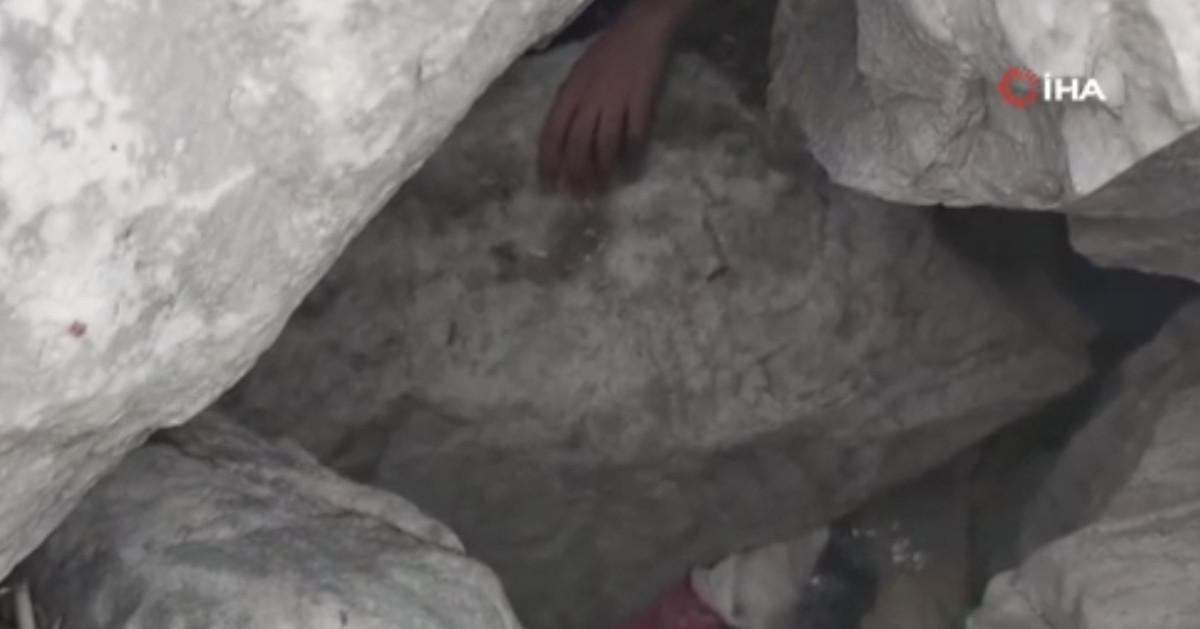 İtfaiye ekipleri genci çıkarmak için çalışma başlattı. Kayalıklar vinç yardımıyla kaldırıldı.