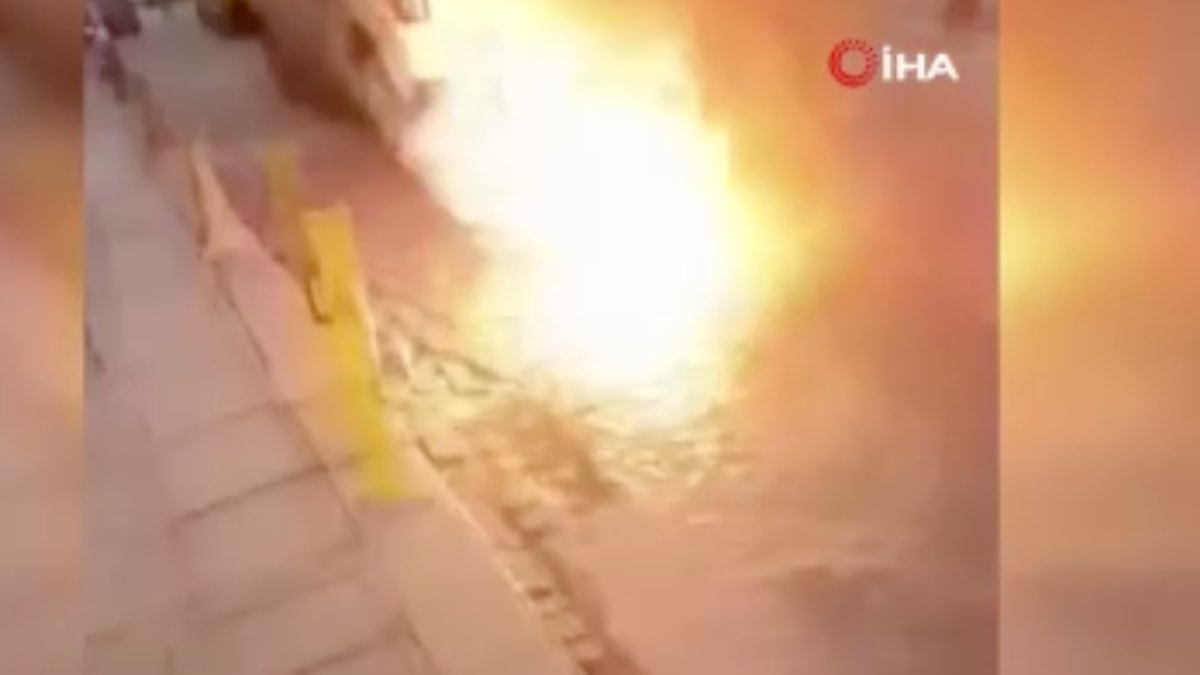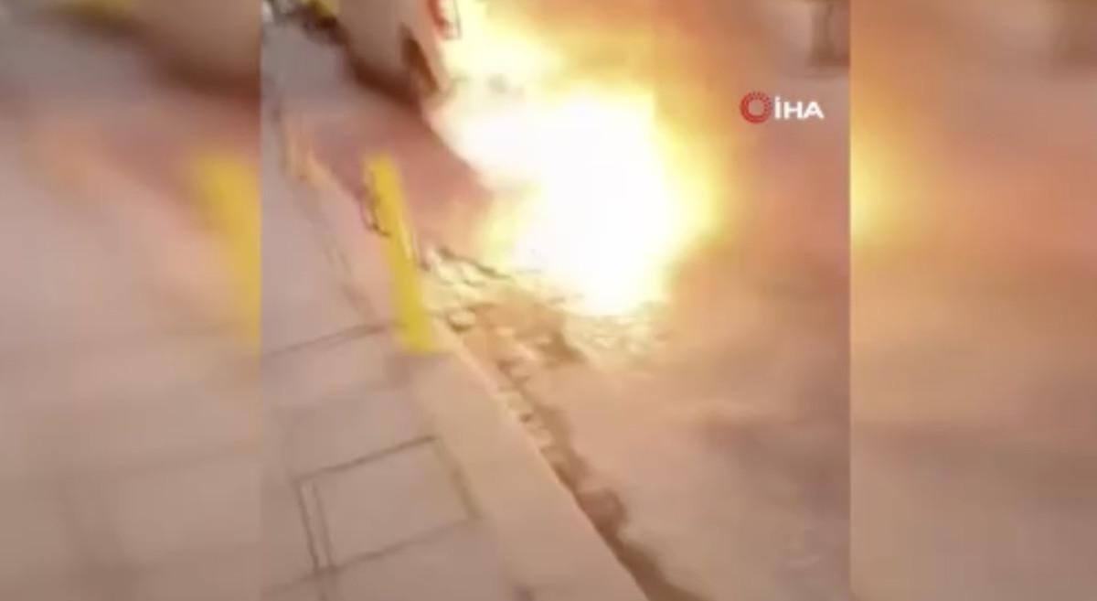 Patlamayla birlikte alevler yükselirken yaşanan korku dolu anlar, bir vatandaş tarafından cep telefonu kamerası ile kaydedildi.