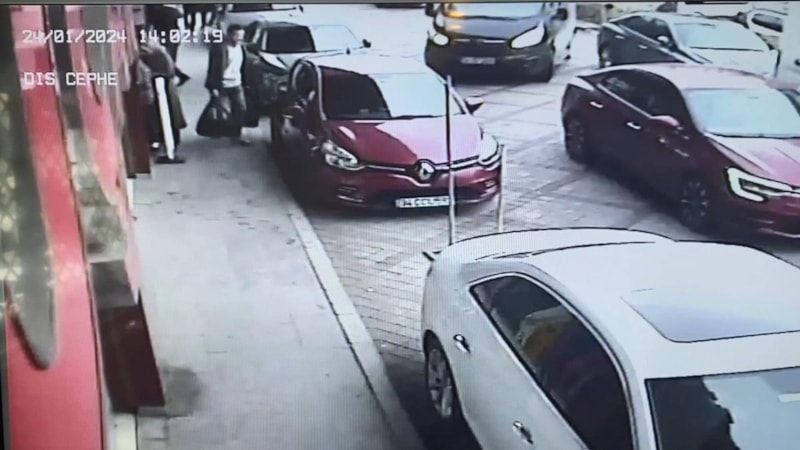 Sokakta bulunan bir kişi durumu fark edip kaçan gaspçılara çelme takmaya çalıştı ancak başaralı olamadı.