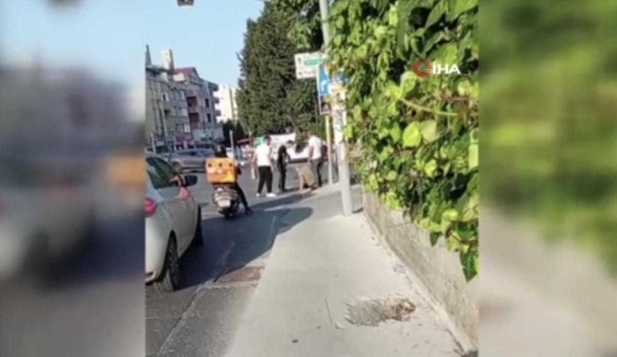 Görüntülerde, olay yerine gelen kocanın, karısını takip ettiği iddia edilen şahsı dakikalarca dövdüğü anlar yer aldı.