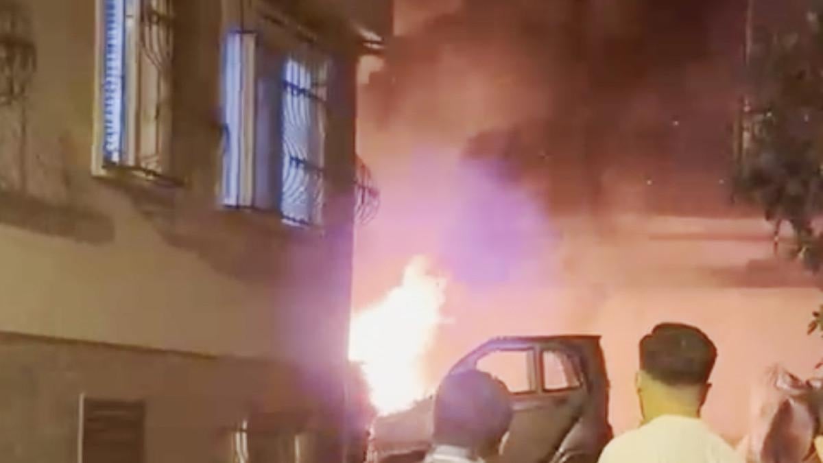 Eşinin ailesinin evinin önüne giden İrfan K., eşine tehditler savurduktan sonra N.K.'nin cezaevinde olan ağabeyine ait park halindeki aracı kundakladı