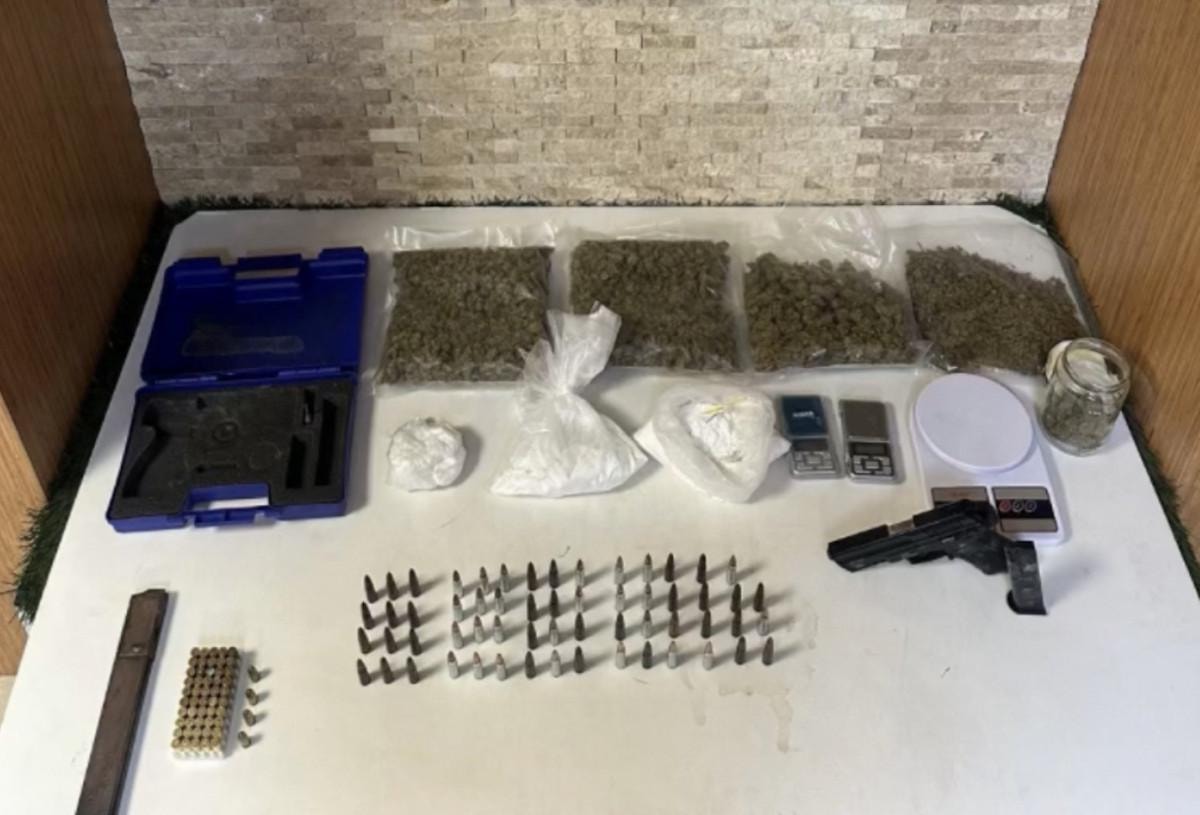 Evde yapılan aramalarda ise bin 195 gram marihuanna, 560 gram toz kokain, 3 adet hassas terazi, ruhsatsız tabanca, şarjörler ve fişek ele geçirildi.
